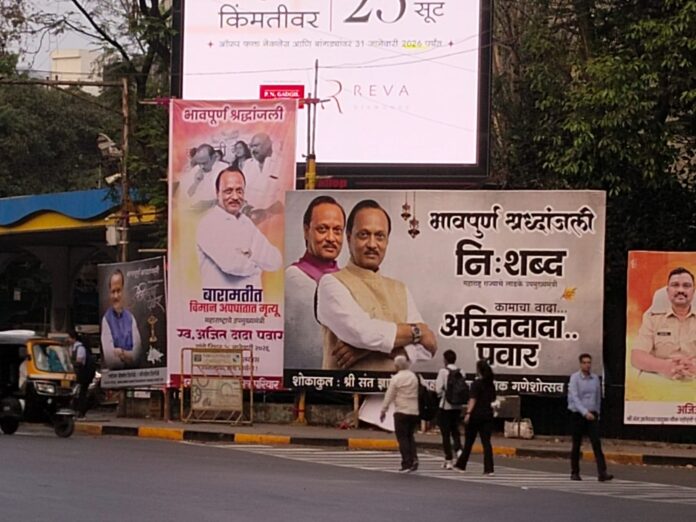 Ajit Pawar Death : उपमुख्यमंत्री अजित पवार यांच्या पार्थिवावर गुरुवारी दुपारी बाराच्या सुमारास विद्या प्रतिष्ठानच्या मैदानात शासकीय इतमामात अत्यसंस्कार करण्यात आले. पिंपरी-चिंचवड आणि पुण्याशी अजितदादांचे अतूट, जिव्हाळ्याचे नाते असल्याने शहरात चौका-चौकात अजितदादांना श्रद्धांजली चे फलक लागले आहेत.